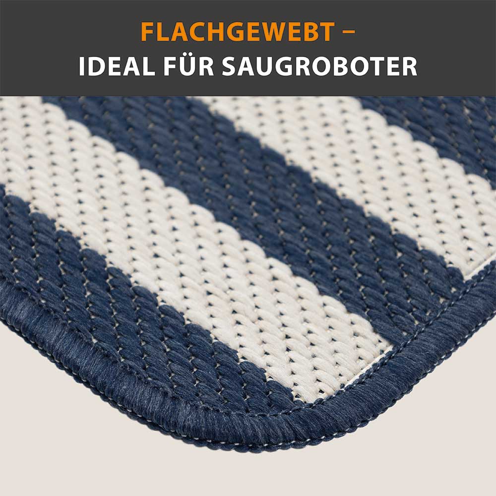 Die Fußmatte "Home Maison" in Blau und Beige setzt mit ihrem modernen Streifenmuster einen... mehr