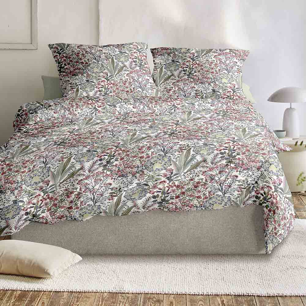 Florale Biber-Bettwäsche aus 100% Baumwolle