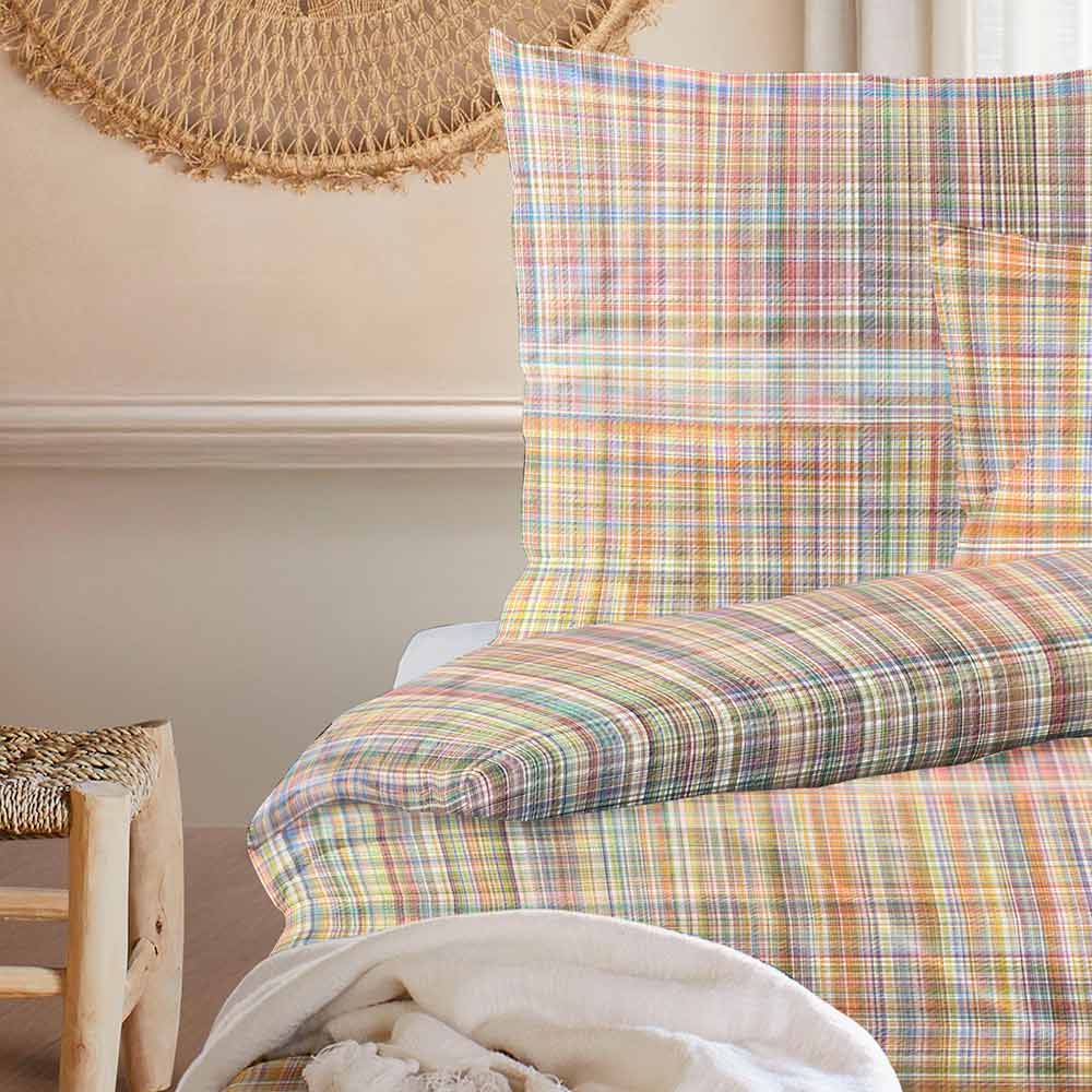 Die Irisette Bettwäsche WAVE 8693 bringt mit ihrer bunten Farbgestaltung Lebensfreude in Ihr Schlafzimmer. Das karierte Dessin sorgt für eine frische, moderne Atmosphäre und lässt sich vielseitig mit unterschiedlichen Einrichtungsstilen kombinieren. Gefertigt aus 100 % Baumwolle in hochwertiger Mako-Satin-Webart bietet die Bettwäsche eine besonders weiche und geschmeidige Haptik für erholsame Nächte. Praktisch im Alltag: Sie ist bei 60 °C waschbar und pflegeleicht, sodass Sauberkeit und Frische mühelos erhalten bleiben. Mit einer Größe von 155 cm x 220 cm für den Bettbezug und 80 cm x 80 cm für die Kissenhülle sowie einem komfortablen Reißverschluss gestaltet sich das Beziehen einfach und bequem.