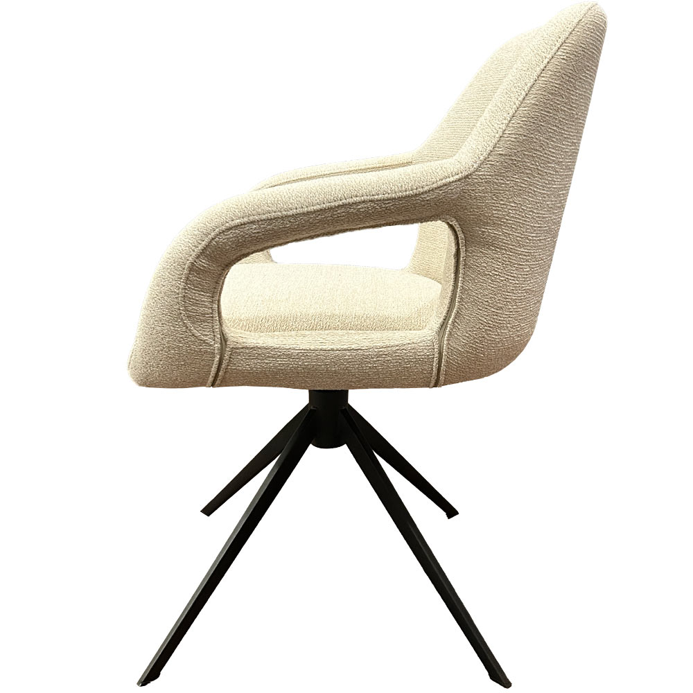 Einfach mal Sitzen bleiben! Der Armlehnstuhl Move Relax ist drehbar um 360° und verfügt über eine beruhigende Wipp-Funktion, die komfortables Sitzen ermöglicht. Der helle Stoffbezug im Farbton Sahara Beige verleiht dem Stuhl eine warme, zeitlose Note. Vier schwarz lackierte Metallbeine in X-Form sorgen für stabile Standfestigkeit und einen modernen Look. Mit seiner Federkernpolsterung bietet dieser Armlehnstuhl komfortablen Sitzkomfort. Der Stuhl hat eine Gesamthöhe von 86cm und ist 60cm breit. Mit einer Sitzhöhe von 49cm und Sitztiefe von 45cm ist der Armlehnstuhl Move Relax ideal für Ess- oder Arbeitsbereiche.