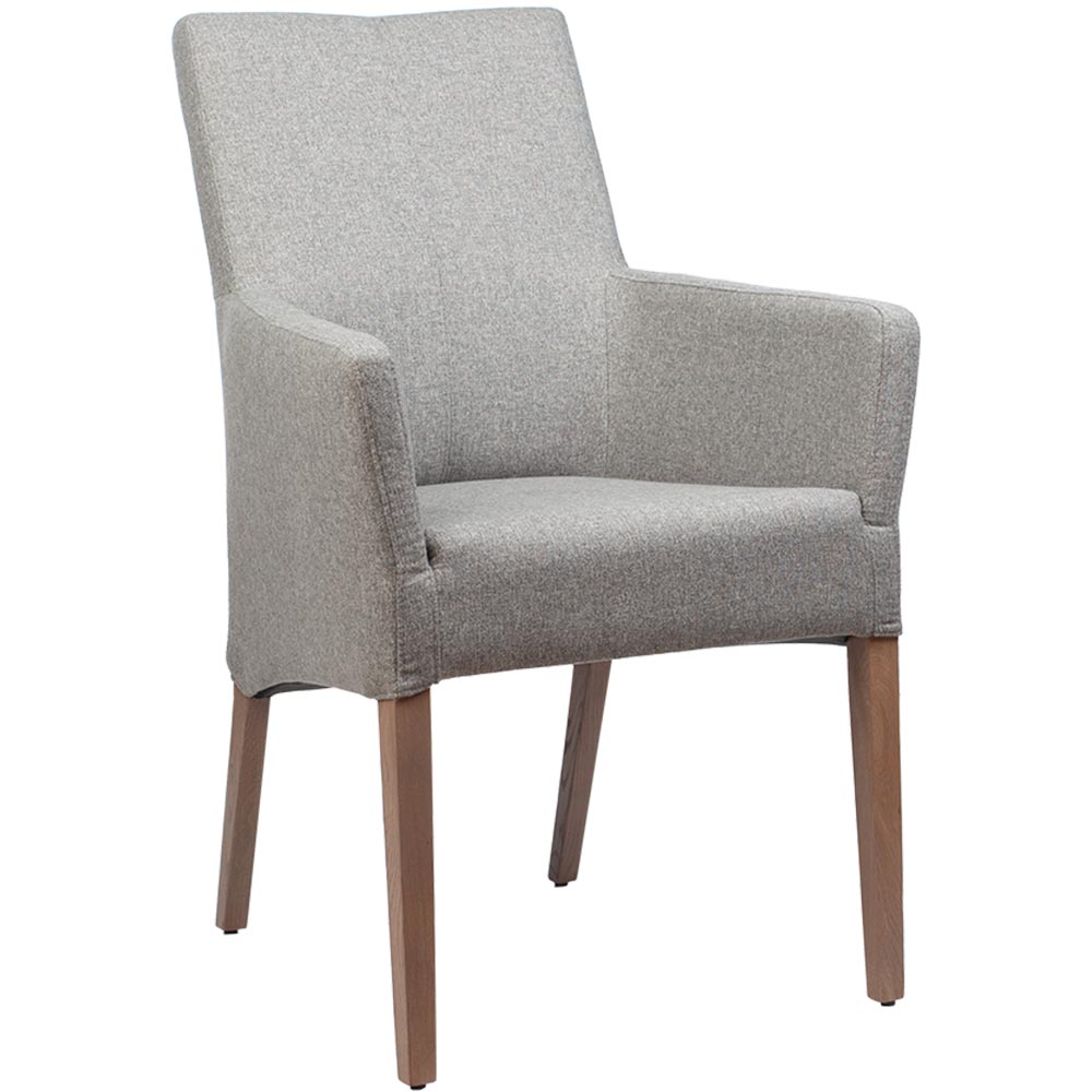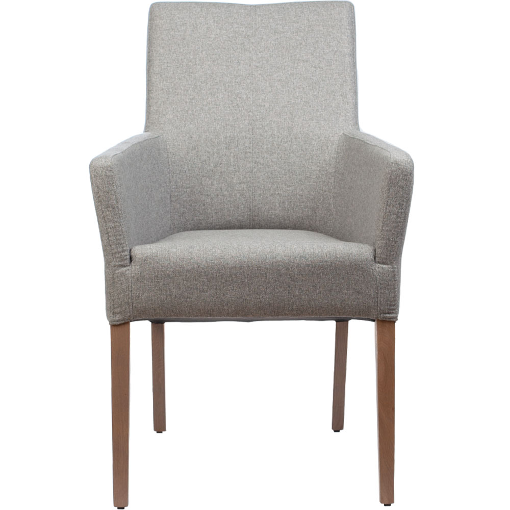 Ein absoluter Klassiker ist dieser Armlehnstuhl Joos in der Grundfarbe Hellgrau! Aufgrund des sesselartigen Designs bietet sich diese Sitzgelegenheit auf ansprechende Weise für verschiedene Wohnstile an. Mit den integrierten Armlehnen ist das Sitzen hier besonders gemütlich, darüber hinaus überzeugt der Armlehnstuhl durch die mit Schaumstoff gepolsterte Sitzfläche und den Stuhlbeinen aus Massivholz. Der Stuhl ist mit festem Polsterstoff bezogen und hat eine Höhe von 96 cm und einer Breite von 60 cm. Die Sitzhöhe von 49 cm bietet eine angenehme Sitzpositionund ist ideal als Esszimmerstuhl geeignet.