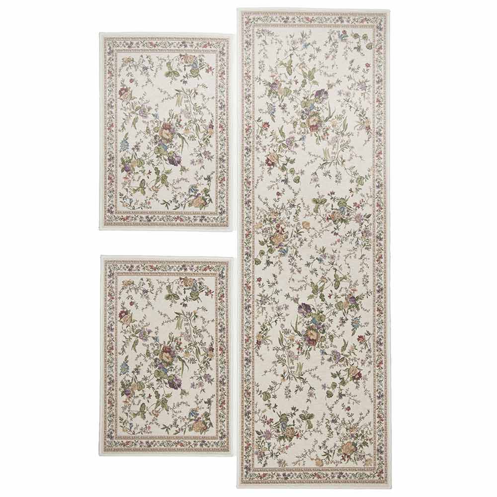 Die Bettumrandung Flomi Sagrini in Creme überzeugt mit einem dezenten floralen Muster und einer eleganten Umrandung. Diese besteht aus drei Teilen und misst 70 x 400 cm und hat eine Florhöhe von 5 mm, was ihn ideal für den Innenbereich macht. Der maschinell gewebte Teppich aus Belgien besticht durch seine helle Grundfarbe und passt perfekt zu modernen Wohnkonzepten. Dank seiner Eignung für Fußbodenheizungen und der pflegeleichten Flachgewebe-Oberfläche ist er funktional und dekorativ zugleich. Die floralen Details und die stilvolle Umrandung setzen besondere Akzente in jedem Raum.