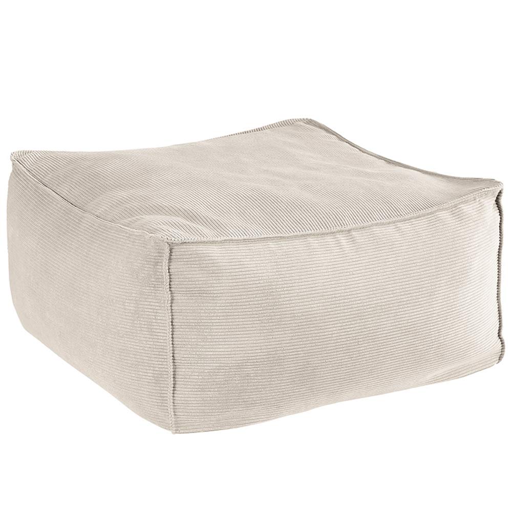 Machen Sie es sich gemütlich auf dem sandfarbenen Hocker im modernen Cord Look. Der Cordhocker Nopper ist mit Polyester Kugeln gefüllt und passt sich an die Körperform an. Das Design erinnert an ein Sitzkissen und lässt sich super kombinieren. Der quadratische Hocker hat die Stellmaße 88 cm x 88 cm und ist 38 cm hoch.