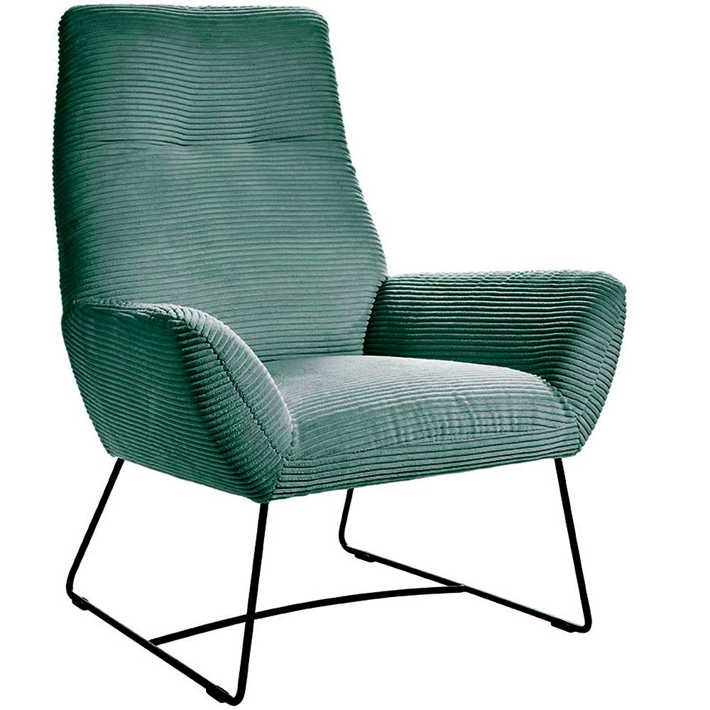 Machen Sie es sich gemütlich auf dem grünen Sessel im modernen Cord Look. Der Cordsessel Basic hat eine hervorragende Sitzqualität durch die Stahl-Wellenunterfederung in der Kombination mit dem PUR-Schaum, der sich an die Körperform anpasst. Der Rücken ist aus ergonomisch geformten Schaumstoff. Die tragenden Teile des Gestells bestehen aus Massivholz, dadurch ist der Sessel beständig und stabil. Vervollständigt wird der moderne Look durch die schwarzen Metallfüße im matten Design. Der Sessel hat die Stellmaße 81 cm x 82 cm und ist 102 cm hoch. Die Sitzhöhe beträgt 45 cm und die Sitztiefe 56 cm. Die Lieferung erhalten Sie bereits montiert.