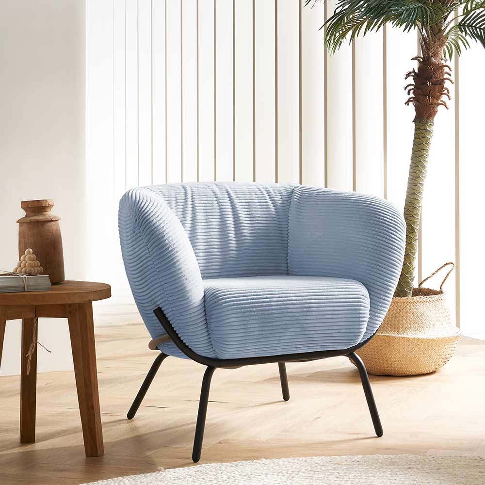 Machen Sie es sich gemütlich auf dem hellblauen Sessel im modernen Cord Look. Der Cordsessel... mehr
