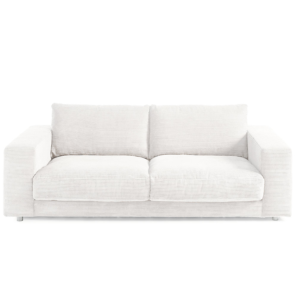Machen Sie es sich gemütlich auf der weißen Polstergarnitur im modernen Feincord Look. Das Feincordsofa Seventies hat eine hervorragende Sitzqualität durch die Stahl-Wellenunterfederung in der Kombination mit dem PUR-Schaum, der sich an die Körperform anpasst. Das hochwertige Kammerkissen sorgt dafür, dass das Füllmaterial gleichmäßig verteilt ist. Die tragenden Teile des Gestells bestehen aus Massivholz, dadurch ist das Sofa beständig und stabil. Die Couch hat die Stellmaße 107 cm x 230 cm und ist 85 cm hoch. Die Sitzhöhe beträgt 43 cm und die Sitztiefe 64 cm. Die Lieferung erhalten Sie teilmontiert in zwei Teilen mit Aufbauanleitung.