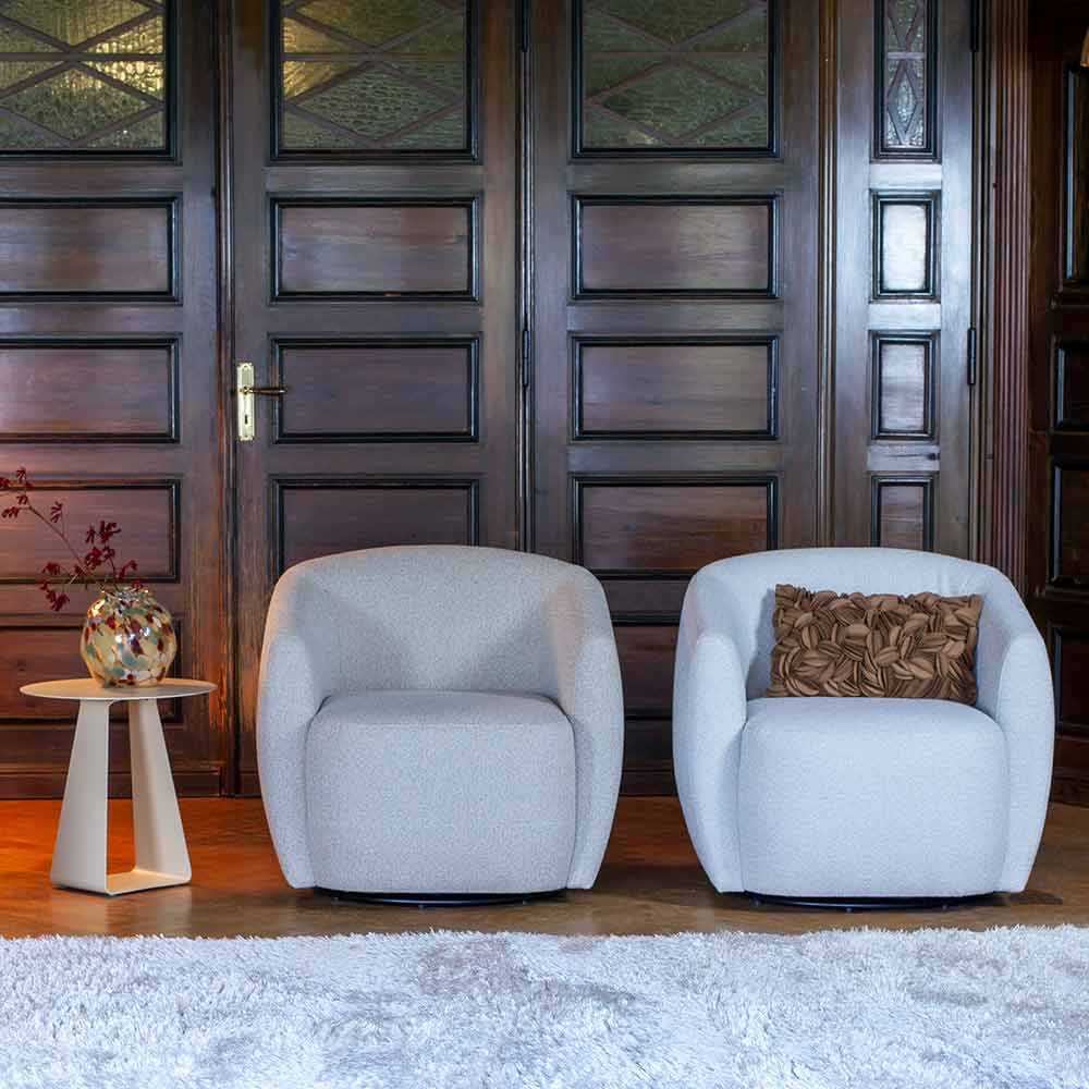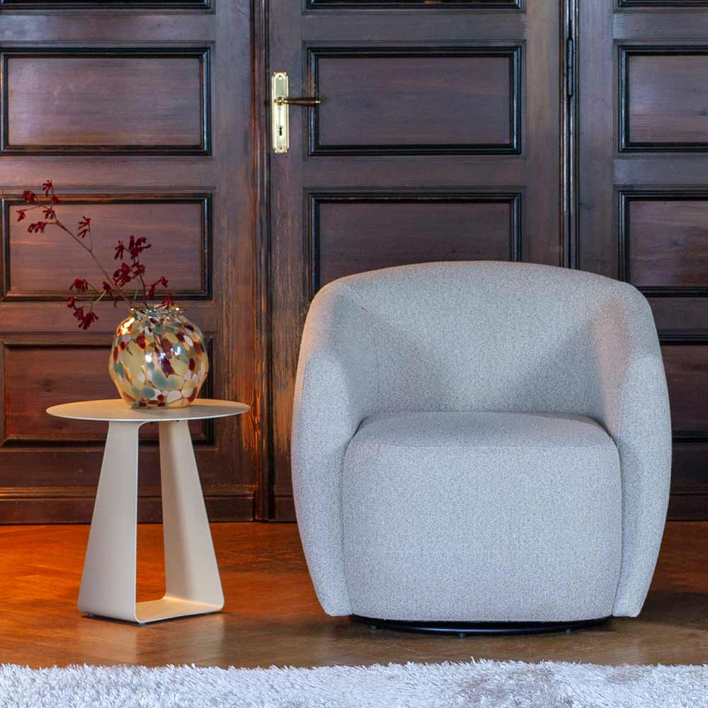 Probiers mal mit Gemütlichkeit! Mit dem bequemen Drehsessel Gera haben Sie ein tolles Sitzmöbel das Komfort und praktische Drehfunktion vereint. Der leinen-melierte Polsterstoff ist robust und unempfindlich und fügt sich harmonisch in jeden warmen Einrichtungsstil ein. Mit einer Höhe von 76cm und einer Breite von 85cm passt sich der Sessel stilsicher in viele Wohnlandschaften oder einladenden Sitzecken ein. Mit Schaumstoff gepolstert hat dieser Sessel eine bequem feste Sitz- und Rückenfläche.