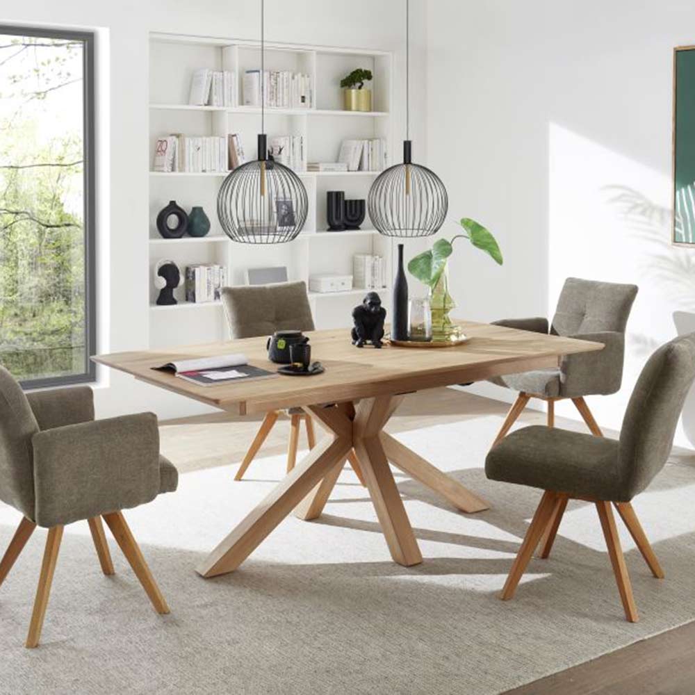 Der Esstisch John überzeugt durch sein zeitloses Design und die hochwertige Verarbeitung aus massivem Holz. Gefertigt aus geölter Wildeiche bringt der Tisch eine natürliche Ausstrahlung und ein lebendiges Holzbild in den Essbereich. Die rechteckige Tischform bietet großzügigen Platz für gemeinsame Mahlzeiten und lässt sich dank integriertem Butterfly-Auszug um 85 cm verlängern. In der Farbe Natur gehalten, wird der Tisch zum langlebigen Mittelpunkt des Raumes. Mit einer Höhe von 75 cm, einer Breite von 100 cm und einer Länge von 200 cm eignet sich der Esstisch John ideal für Alltag und besondere Anlässe.