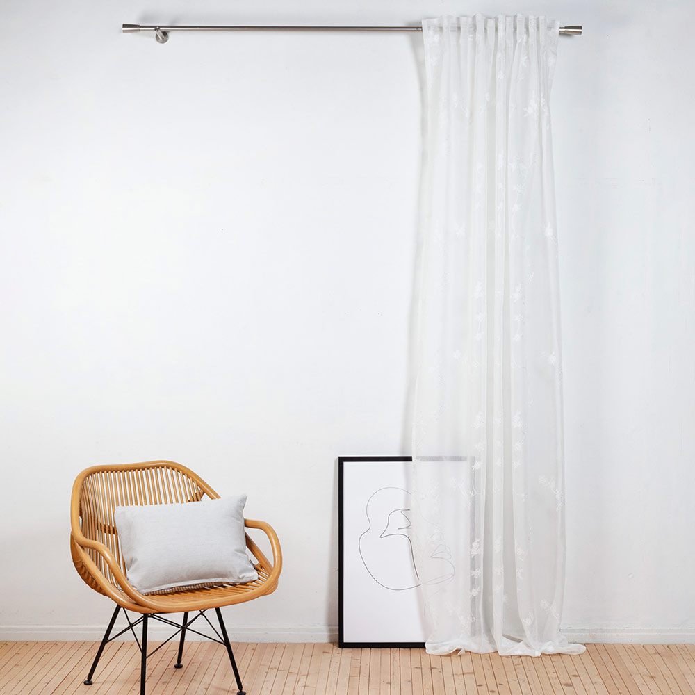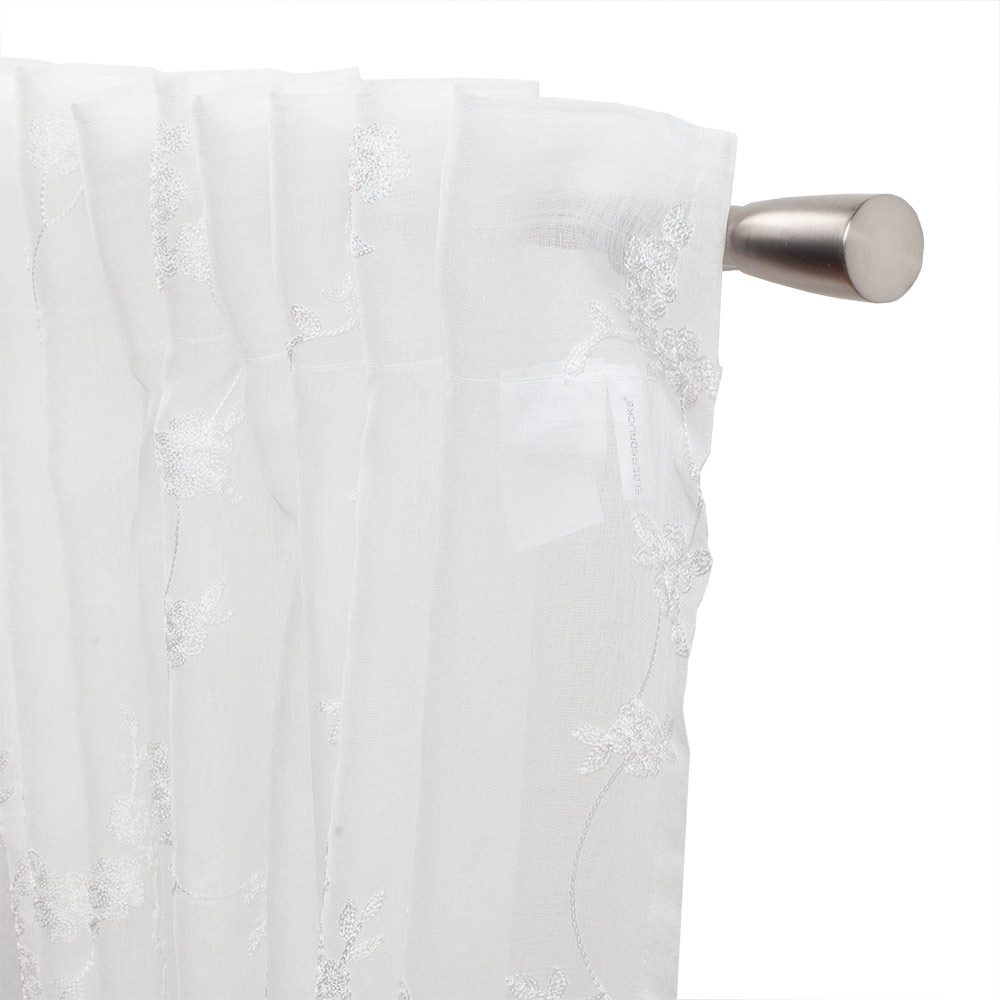 Weißer Schlaufen-Vorhang mit floraler Stickerei