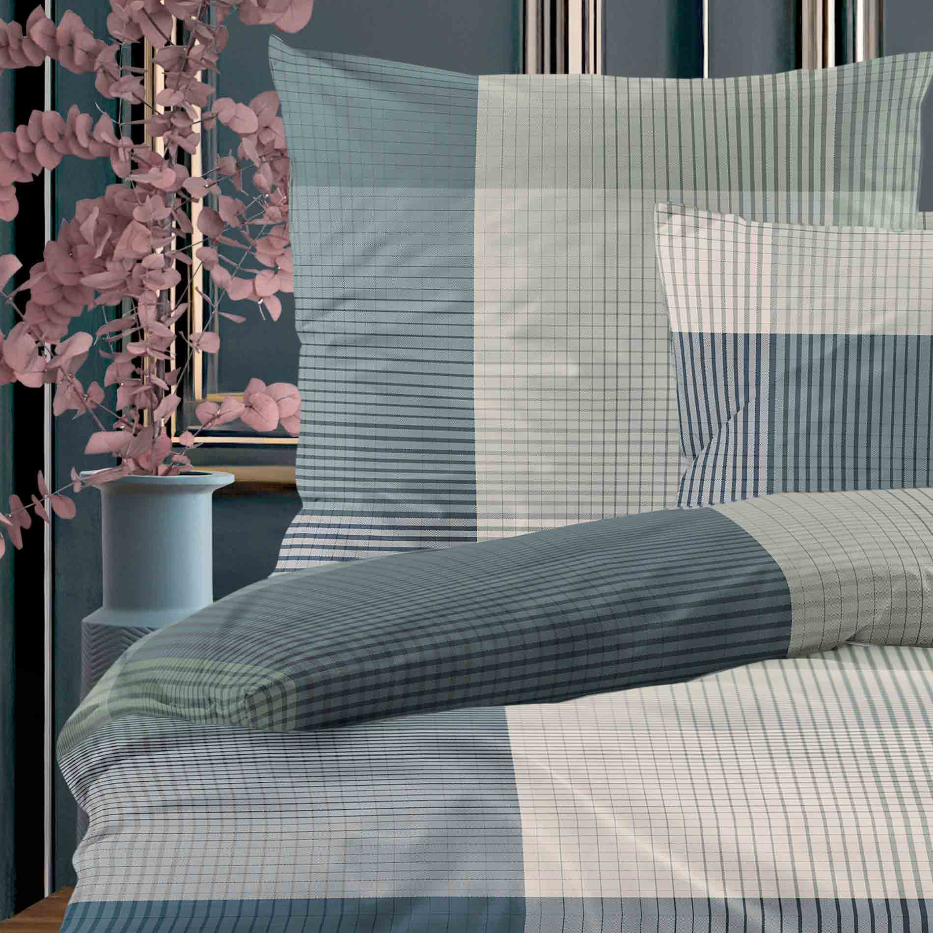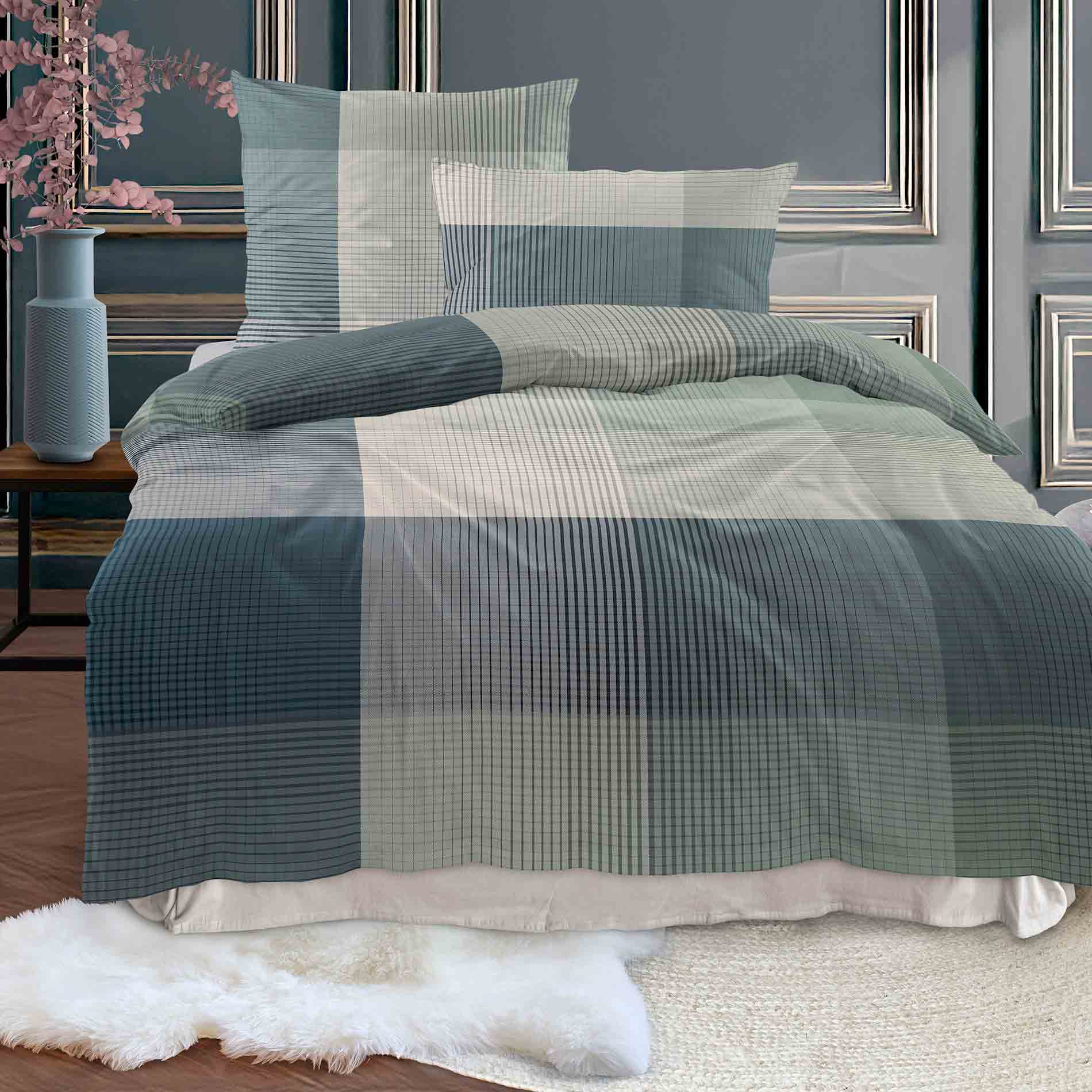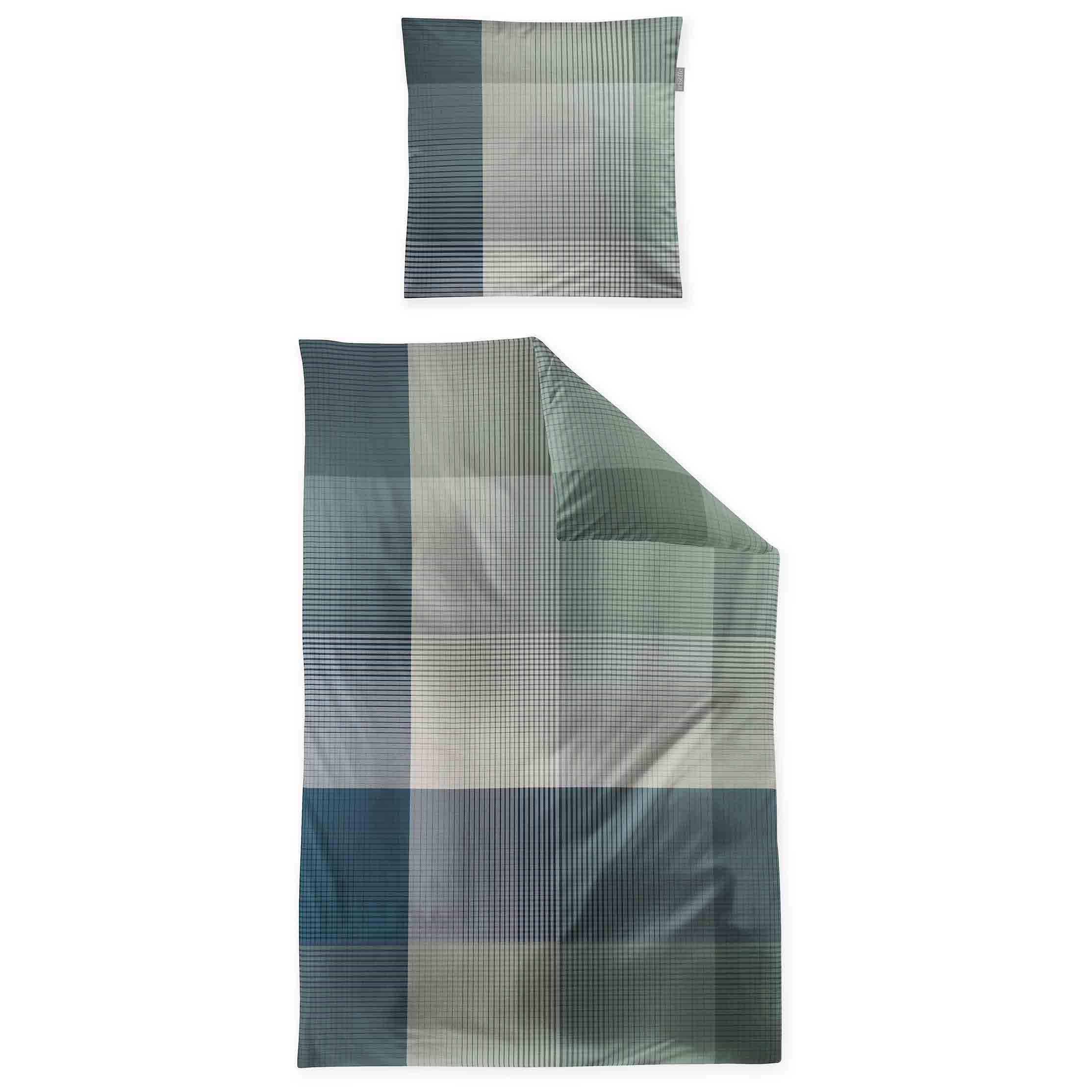 Die Irisette Bettwäsche „Wave 8637“ überzeugt mit einem stilvollen karierten Dessin in dunklen Salbeitönen auf einer blauen Grundfarbe – perfekt für ein modernes und gleichzeitig gemütliches Schlafzimmerambiente. Die harmonische Farbkombination verleiht dem Raum eine ruhige, elegante Ausstrahlung, während das klassische Muster zeitlose Akzente setzt. Hergestellt aus 100 % hochwertiger Baumwolle in feiner Mako-Satin-Qualität, bietet die Bettwäsche ein angenehm glattes Hautgefühl und einen edlen, dezenten Glanz. Der Bettbezug in der Größe 155 x 220 cm wird durch eine passende Kissenhülle im Maß 80 x 80 cm ergänzt. Der praktische Reißverschluss sorgt für ein müheloses Beziehen und einen sicheren Halt. Die Bettwäsche ist pflegeleicht, bei 60 °C waschbar und trocknergeeignet. Mit der Irisette Bettwäsche „Wave 8637“ holen Sie sich hochwertige Materialien, zeitloses Design und besten Schlafkomfort ins Zuhause.