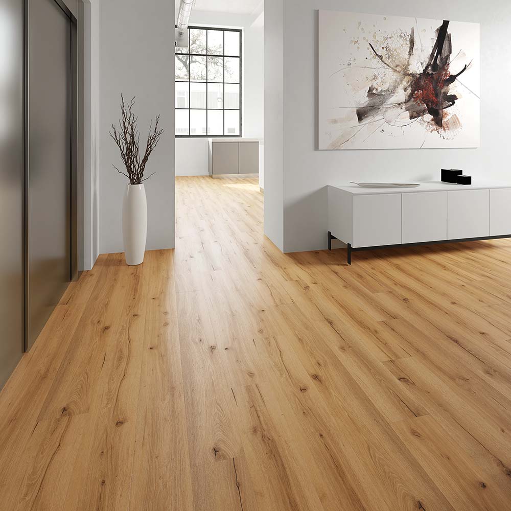 Der Klickvinylboden aus der JOKA Kollektion 340 in Chalet Oak Black überzeugt mit einer stilvollen, mitteldunklen Holzoptik, die eine warme und zugleich moderne Raumwirkung erzeugt. Die Dielen sind 184 mm breit und verfügen über eine umlaufende 4-seitige Fase, wodurch ein authentisches und detailreiches Holzbild entsteht, das sich vielseitig in Wohn- und Gewerberäumen einsetzen lässt. Die vollflächige Verklebung sorgt für eine feste und dauerhafte Verbindung mit dem Untergrund, was die Stabilität und Langlebigkeit des Bodens erhöht. Der Bodenbelag ist für den Einsatz in Feuchträumen geeignet und kann problemlos mit Warmwasser-Fußbodenheizungen kombiniert werden. Mit einer Nutzschicht von 0,40 mm und der Nutzungsklasse 32 bietet er eine hohe Widerstandsfähigkeit gegen Abnutzung. Die rutschhemmende Oberfläche (R10) sorgt zudem für mehr Sicherheit, auch auf Treppen und bei der Nutzung mit Stuhlrollen. Der Boden ist phthalatfrei und antistatisch, was den Wohnkomfort erhöht. Mit den Zertifizierungen FloorScore, Indoor Air Comfort sowie der QNG-Konformität erfüllt er wichtige Anforderungen an Gesundheit und Umweltverträglichkeit. Dieser Klebevinylboden ist eine praktische und hochwertige Lösung für langlebige und optisch ansprechende Bodenbeläge.