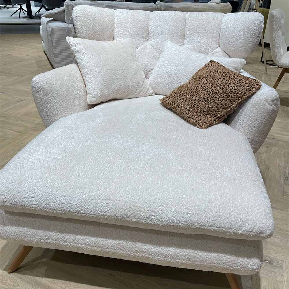 Erleben Sie den Longseat Sixty - die ideale Verbindung aus zeitlosem Design und erstklassiger Qualität. Der Holzfuß aus geölter Eiche verleiht diesem Loungesofa eine warme und natürliche Note. Mit seiner hellen Farbgebung in "shaun white" fügt sich der Longseat Sixty mühelos in jede moderne Einrichtung ein. Der kuschelige Polster-Bezug mit legere Polsterspannung lädt zu entspannten Stunden ein. Die Wellenunterfederung sorgt für optimalen Sitzkomfort, während der großzügige 80 cm breite und 125 cm tiefe Sitzplatz richtig viel Platz bietet. Das Stellmaß von dem Longseat-Sixty sind 130 x 160 cm. Der Teil-Aufbau mit leicht verständlicher Aufbauanleitung macht die Montage zum Kinderspiel. Genießen Sie exklusiven Komfort und Stil mit dem Longseat Sixty - ein echtes Highlight für Ihr Zuhause!