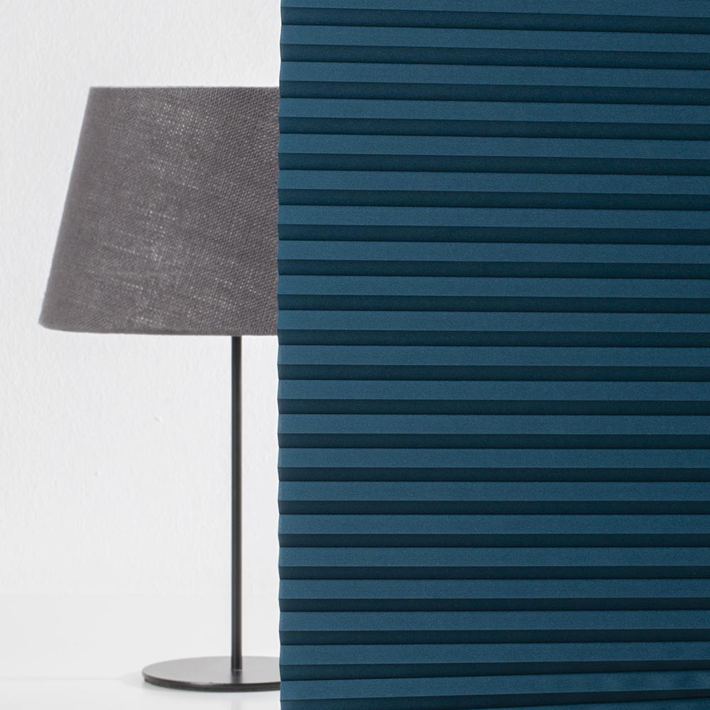 Dieses Wabenplissee sorgt für mehr Wohnlichkeit bei Ihnen zu Hause! Das petrolfarbene Plissee fügt sich problemlos in viele Einrichtungsstile ein und eignet sich für Wohn- und Feuchträume. Der blickdichte Wabenplisseestoff aus 100 % Polyester filtert und dosiert das Licht angenehm. Da die Plisseeschnüre innerhalb der Wabe verlaufen, sind keine störenden Schnurlochstanzungen zu sehen. Dies zeichnet ein Wabenplissee aus und bietet dem Betrachter eine sehr harmonische, wertige und störfreie Ansicht. Die Rückseite dieses Wabenplissees hat dieselbe Farbe wie die Vorderseite. Somit haben Sie die Möglichkeit, die Außenansicht Ihrer Fenster und des Gebäudes individuell zu gestalten. Außerdem hilft die Wabenstruktur bei der Regulierung des Raumklimas - im Winter kann dadurch Energie eingespart werden. Zusätzlich werden Geräusche und Schall von außen und innen gedämpft, weshalb es sich besonders gut für Kinder- und Schlafzimmer eignet. Mithilfe unseres Konfigurators können Sie das Plissee an Ihre Wunschmaße anpassen.