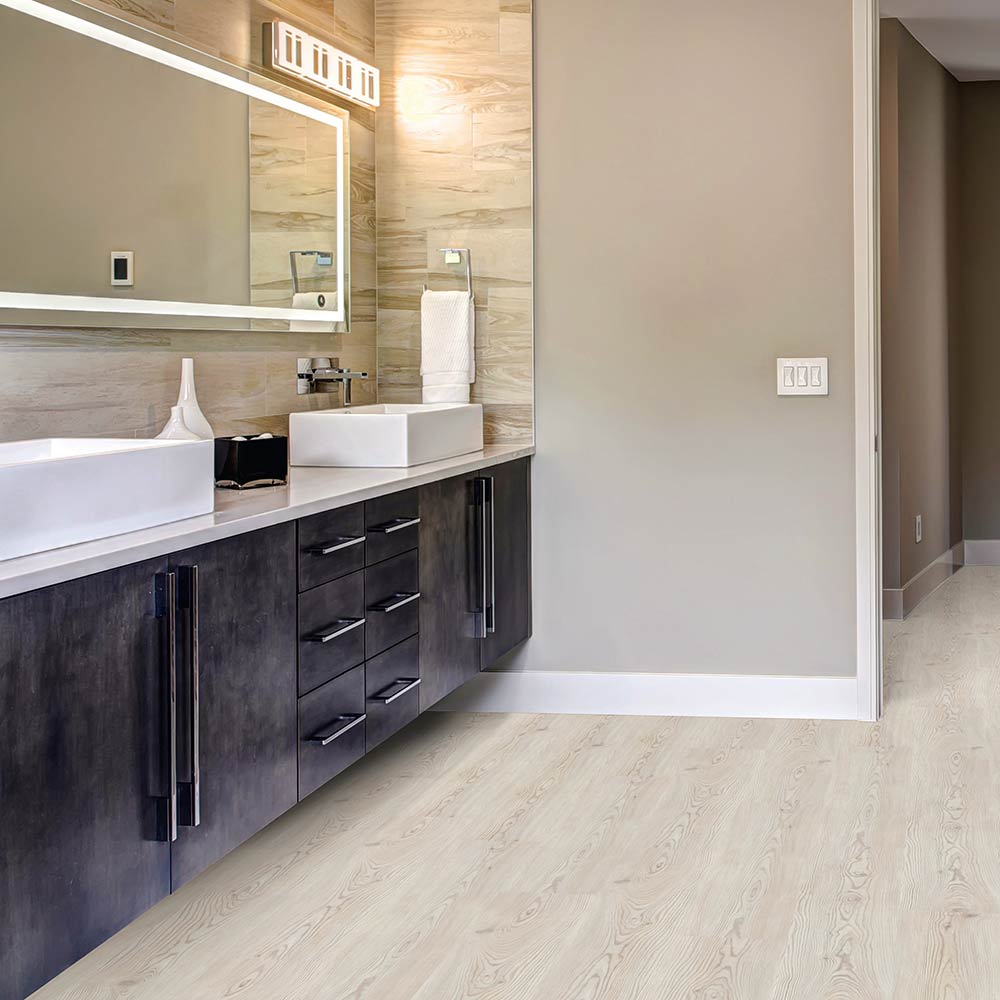 Dieser pflegeleichte Designboden der Kollektion »floors@home/30« ist durch seine Nutzschicht von 0,3mm für private sowie gewerbliche Nutzung geeignet. Die Planken mit strukturierter Oberfläche im Landhausdielendesign werden vollflächig verklebt und können problemlos auf Fußbodenheizung und in Feuchträumen verlegt werden.