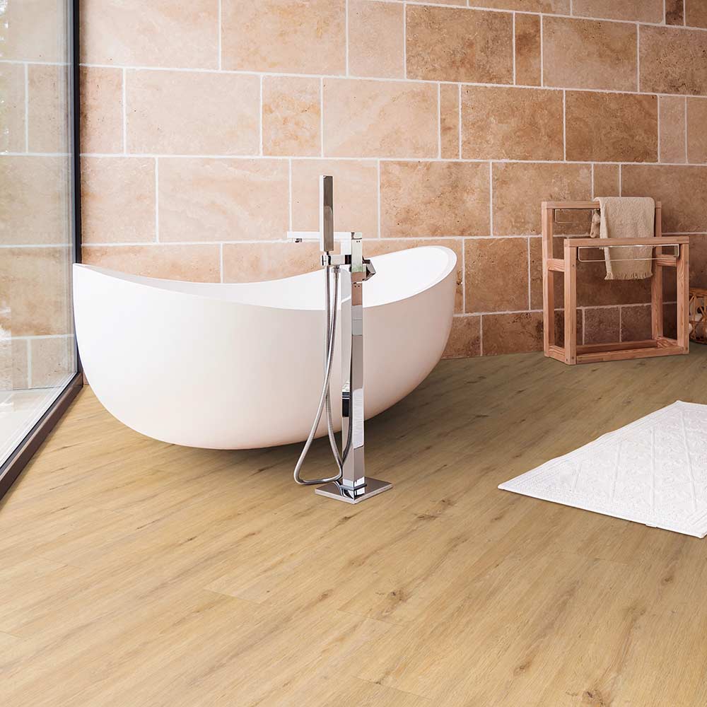 Dieser pflegeleichte Designboden der Kollektion »floors@home/30« ist durch seine Nutzschicht von 0,3mm für private sowie gewerbliche Nutzung geeignet. Die Planken mit strukturierter Oberfläche im Landhausdielendesign werden vollflächig verklebt und können problemlos auf Fußbodenheizung und in Feuchträumen verlegt werden.