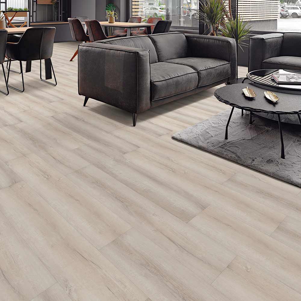 Dieser pflegeleichte Designboden der Kollektion »floors@work/55« ist durch seine Nutzschicht von 0,55mm für private sowie gewerbliche Nutzung geeignet. Die Planken mit strukturiert Oberfläche im Landhausdielendesign werden vollflächig verklebt und können problemlos auf Fußbodenheizung und in Feuchträumen verlegt werden.