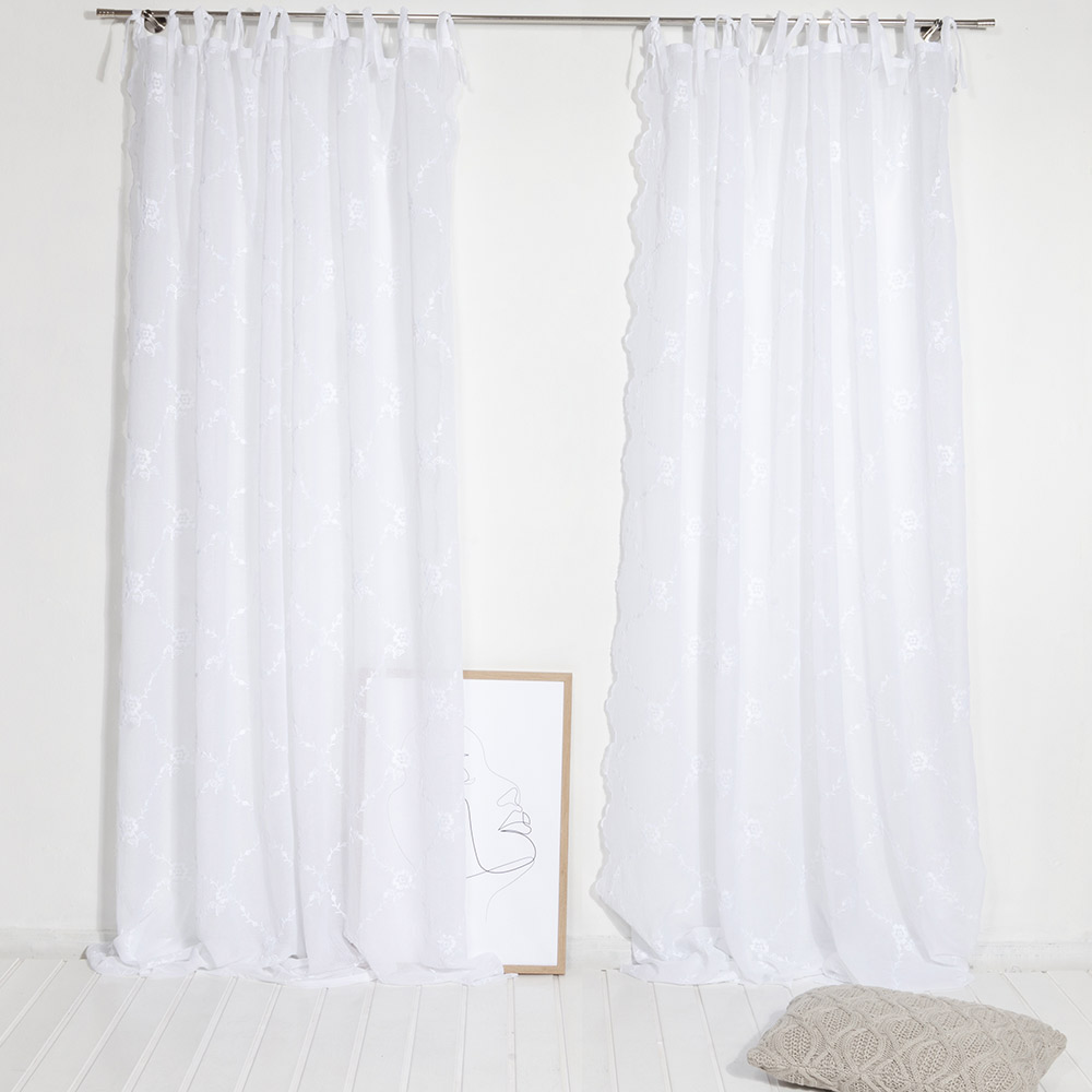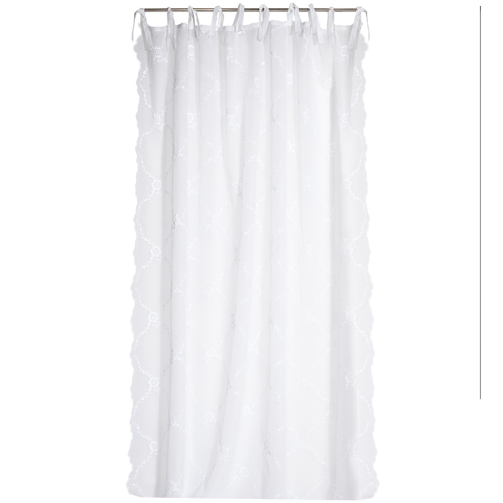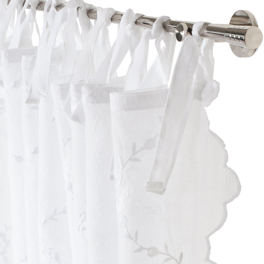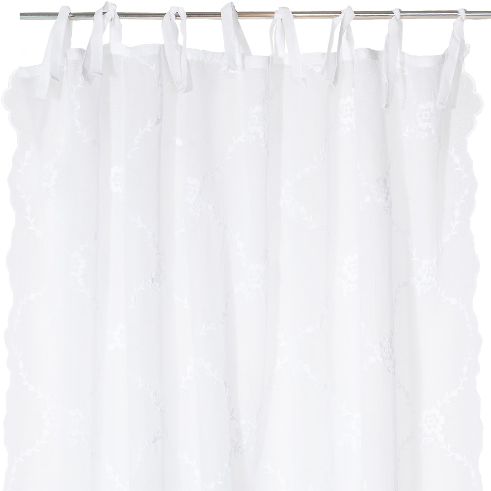 Weißer Schlaufen-Vorhang mit floraler Stickerei