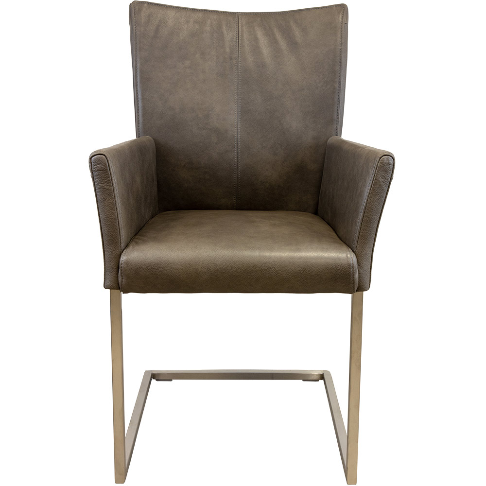 Elegant und schwungvoll am Esstisch - mit dem Schwingsessel Nora mit anthrazitfarbigem Echtlederbezug bieten Sie elegante Sitzmöglichkeiten. Der Armlehnstuhl hat ein schwarzes Metallgestell, das harmonisch die Eleganz unterstreicht. Mit einer Stellfläche von 57cm x 64cm und einer Höhe von 95cm passt er ideal an den Massivholztisch Mammut und lässt sich zudem mit dem Schwingstuhl Nora kombinieren.