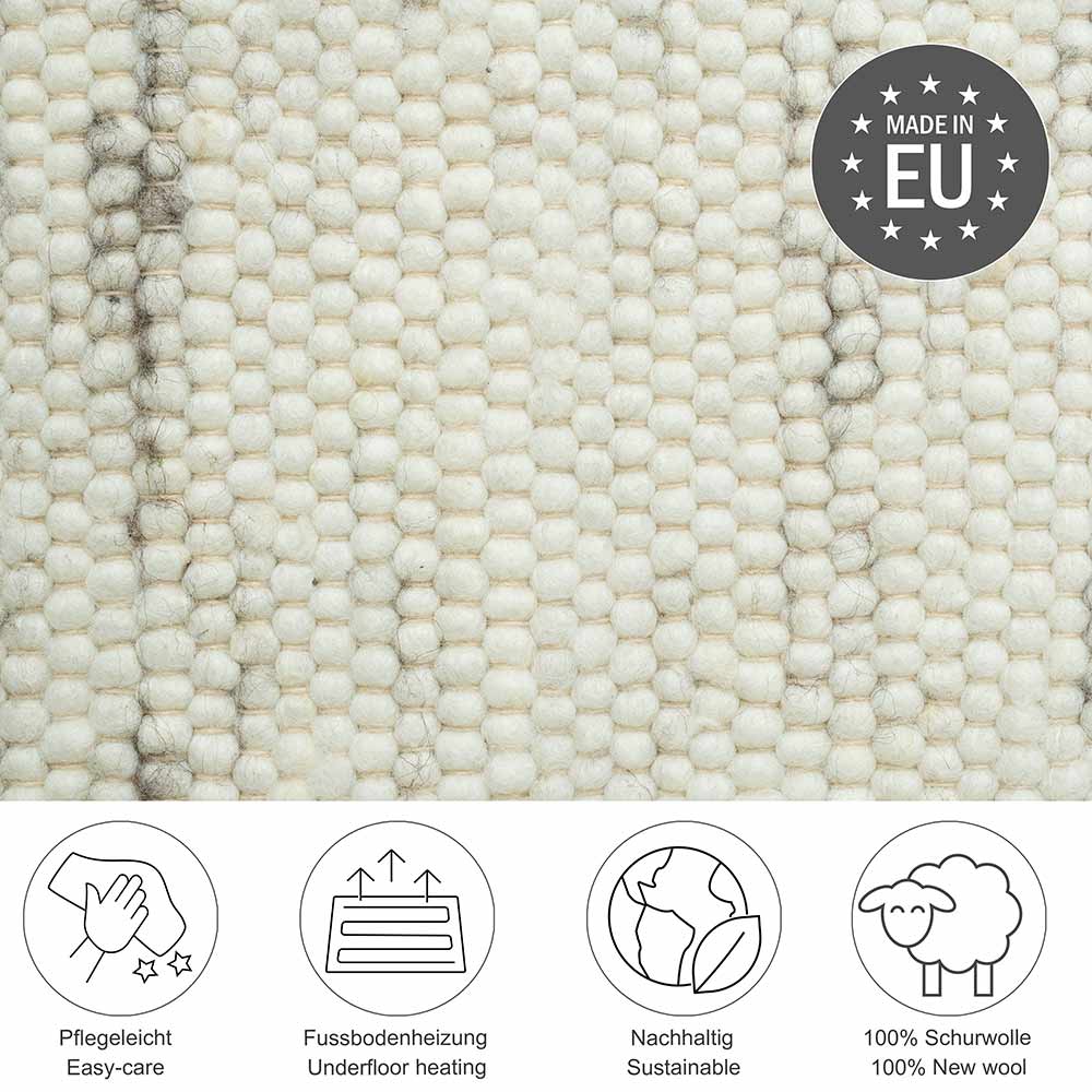 100% reine Schurwolle handgewebt in exzellenter Perfektion! Der Teppich Alm-Glück aus 100% reiner Schurwolle wurde aufwendig und exzellent in Griechenland in traditioneller Handwebkunst hergestellt. Der gewebte Flor hat eine natürlicher Melierung wodurch der Teppich seinen besonderen Charme bekommt. Er ist für Räume mit Fußbodenheizung geeignet und kann zudem beidseitig verwendet werden.