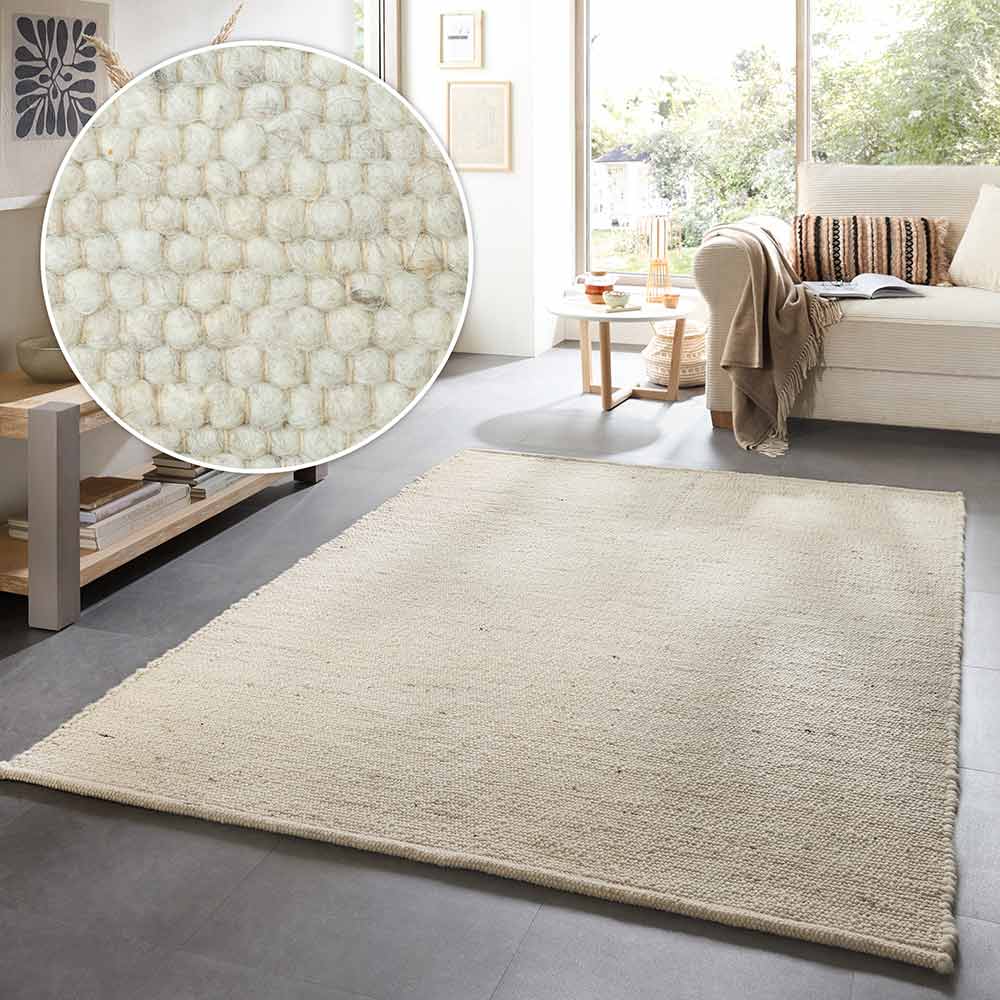 - Pflegehinweis: professionelle Teppichreinigung empfohlen, staubsaugen bitte nur mit der glatten Düse, keine Bürstensauger verwenden.