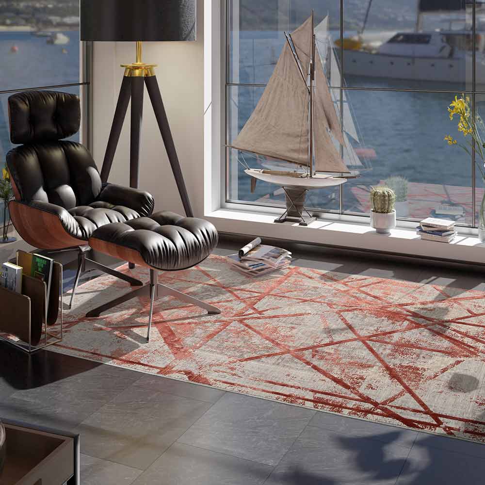 Der Teppich Arizona von Musterring ist das Highlight der Deluxe Collection und verbindet traditionelle Muster mit einer farbenfrohen Moderne. Der Designer-Teppich wird mit Hilfe der innovativsten und neuesten Technologien angefertigt, wodurch eine tolle 3D-Optik entsteht. Der Kurzflor Teppich zeichnet sich durch sein graphisches Muster in rot-grau aus und durch die kurzen Fransen, außerdem überzeugt er mit einem tollen Glanz durch eine spezielle Veredelung und passt somit wunderbar in Ihren modernen Wohnraum. Der Teppich Arizona ist geeigent für Fußbodenheizung und hat ein Maß von 240x330 cm.