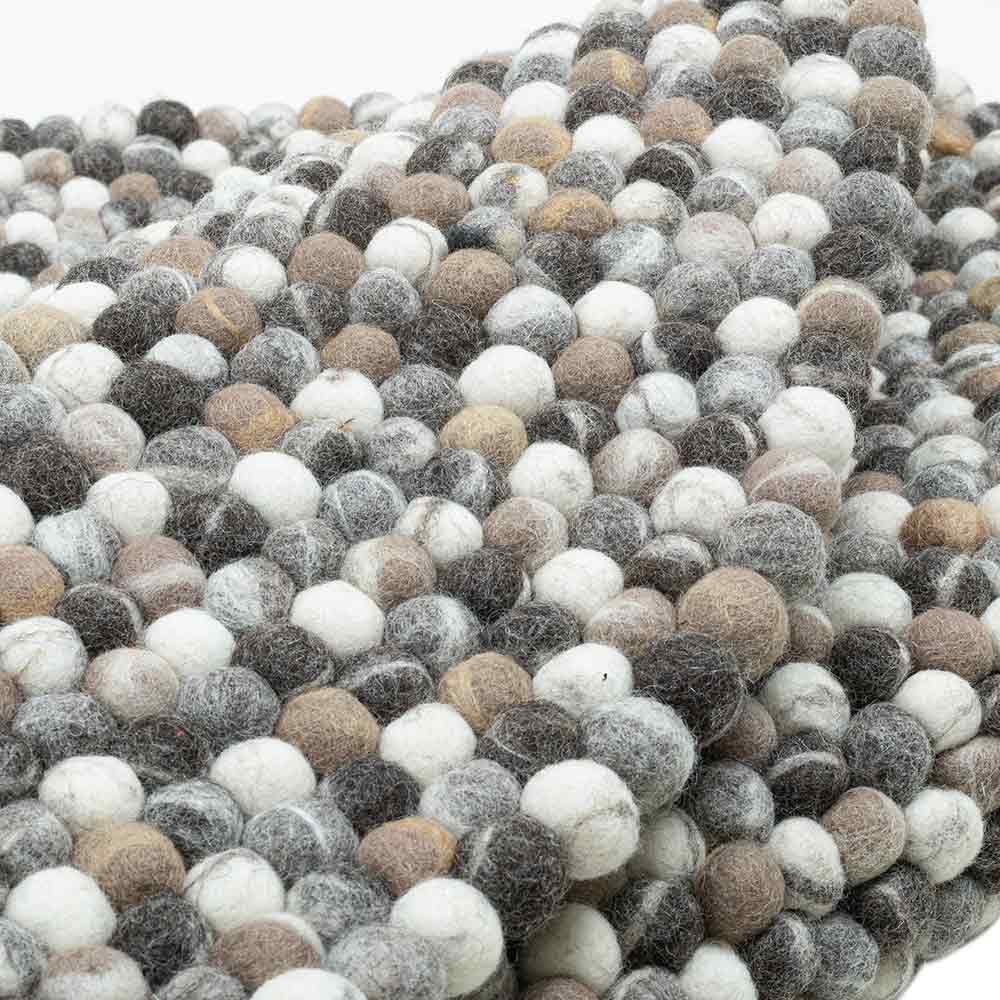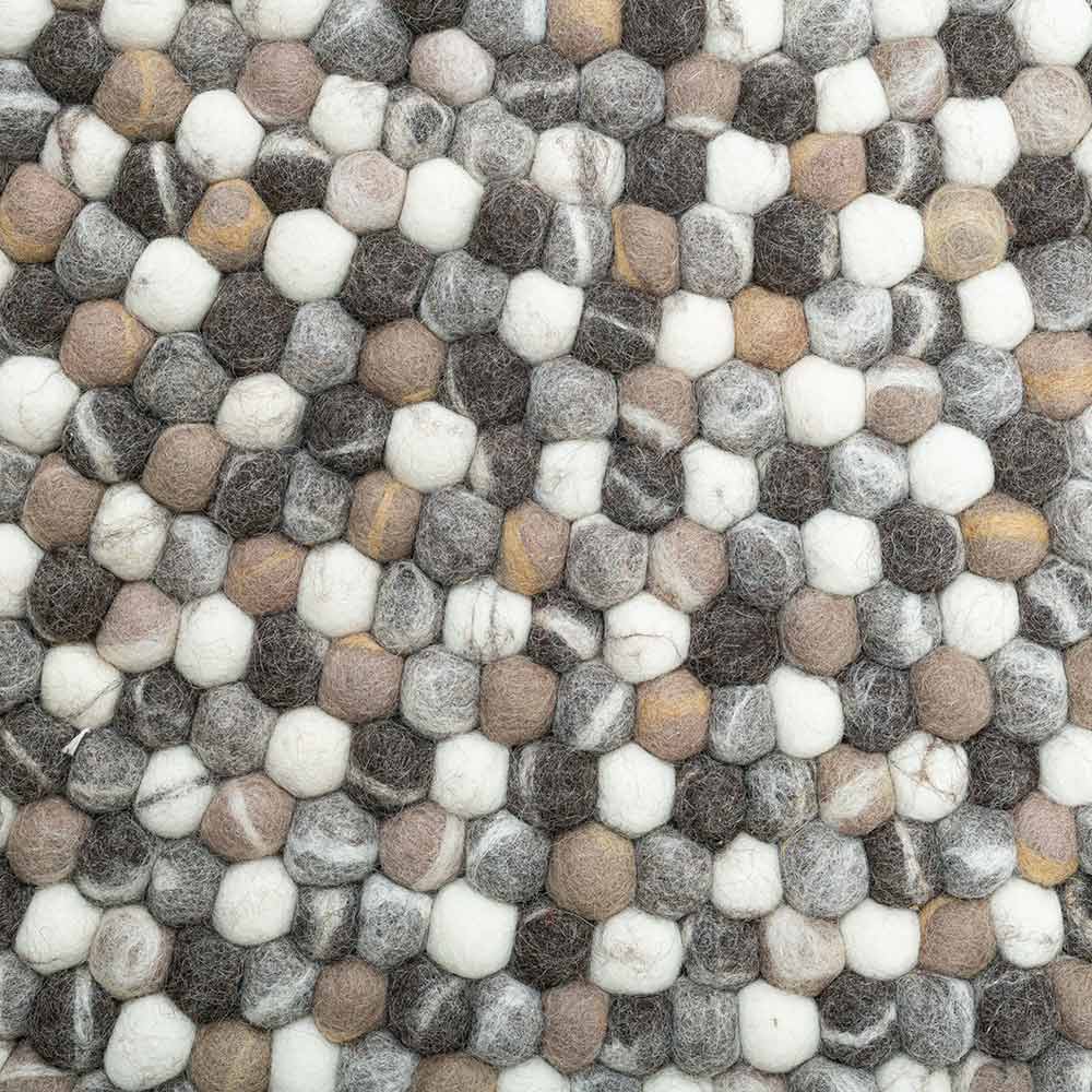 Dieser einzigartige Teppich erobert Ihr Zuhause! Der Teppich besteht aus grauen handgefilzten Schurwollekugeln, die aneinander verarbeitet wurden, sodass eine einzigartige Haptik und Optik entsteht. Der runde Filzteppich "Felty" ist Fußbodenheizung geeignet und hat einen Durchmesser von 190 cm.