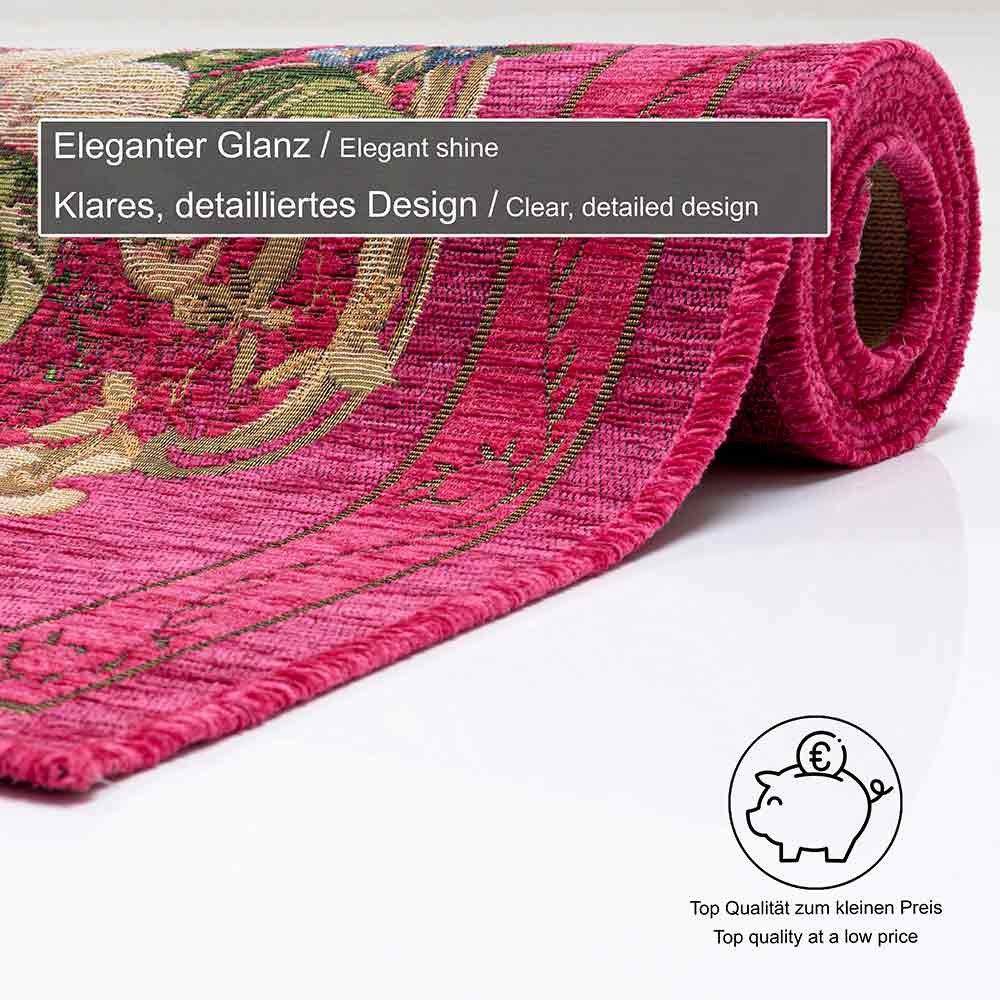 Der Teppich Flomi Florence aus der Kollektion "Theko die Markenteppiche" vereint Eleganz und Funktionalität in einem ansprechenden Design. Mit einer Größe von 120 x 180 cm und einer rechteckigen Form passt er ideal in viele Wohnbereiche. Die helle Farbgebung in Pink verleiht jedem Raum eine fröhliche und frische Atmosphäre. Das tolle florale Muster sorgt hingegen für etwas verspieltes und einen stilvollen akzent in Ihrem Wohnraum. Dank der Florhöhe von 5 mm und der flachgewebten Oberflächenstruktur ist der Teppich besonders pflegeleicht und robust. Er eignet sich hervorragend für den Einsatz auf Fußbodenheizungen, was für zusätzlichen Komfort sorgt. Hergestellt in Belgien, überzeugt der Teppich durch hochwertige Materialien: 63 % Polyester, 27 % Polypropylen und 10 % Baumwolle sorgen für eine angenehme Haptik sowie Strapazierfähigkeit. Zudem weist er nur eine geringe Wärmedämmung auf, was ihn ideal für den Einsatz in gut beheizten Räumen macht. Mit dem Teppich Flomi Florence holen Sie sich ein langlebiges und pflegeleichtes Wohnaccessoire in Ihr Zuhause!