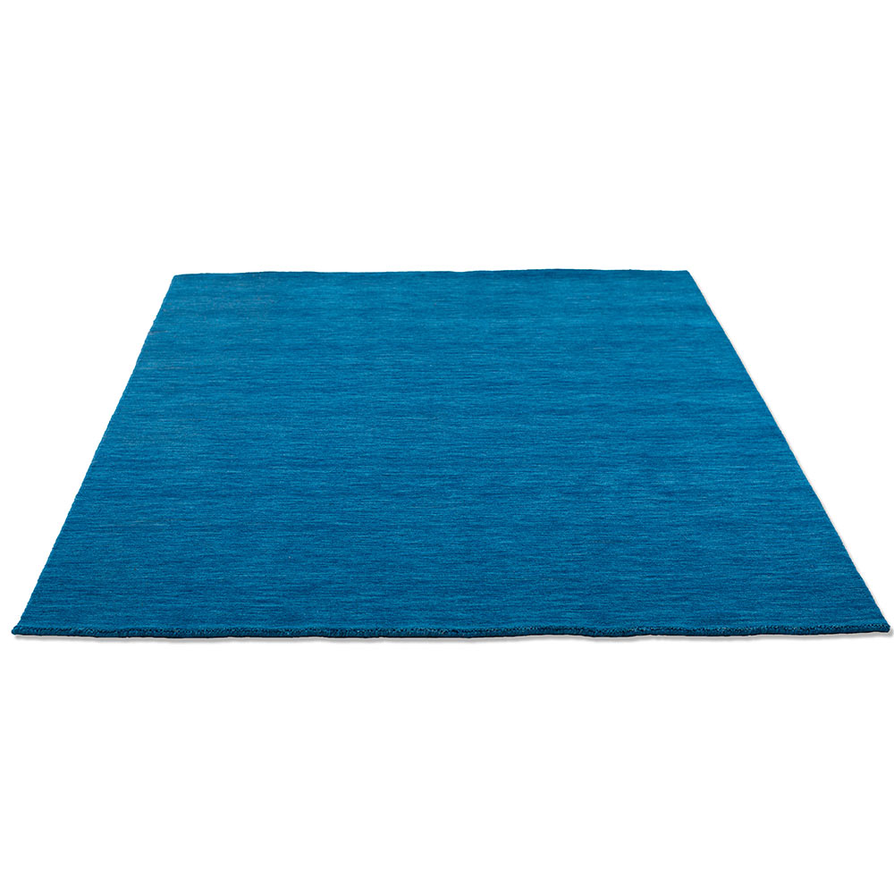 Der unifarbene Teppich "Holi" zeichnet sich durch seine Griffigkeit und Weichheit aus. Die handgewebte Schurwolle lässt eine schön sanfte Oberflächenstruktur entstehen. Der klimaregulierende Teppich in Wollsiegelqualität ist ein Hingucker im intensivem Blau und ist für Böden mit Fußbodenheizung geeignet. Die Maße des Teppichs sind 250 x 350 cm.