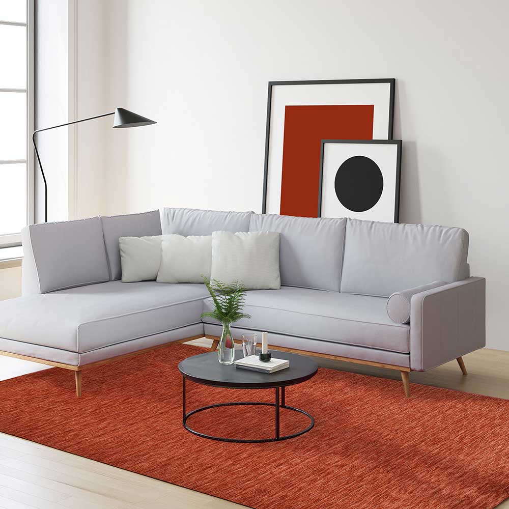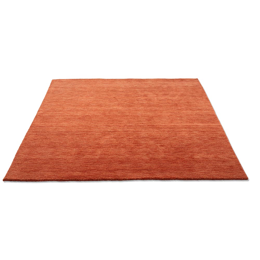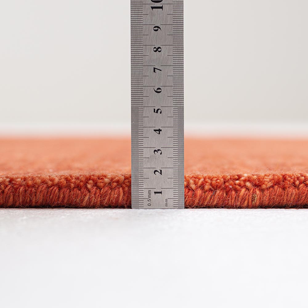 Der unifarbene Teppich Holi zeichnet sich durch seine Griffigkeit und Weichheit aus. Die handgewebte Schurwolle lässt eine schön sanfte Oberflächenstruktur entstehen. Der klimaregulierende Teppich in Wollsiegelqualität ist ein Hingucker im intensiven Terracotta und ist für Böden mit Fußbodenheizung geeignet. Die Maße des Teppichs sind 140 x 200 cm.