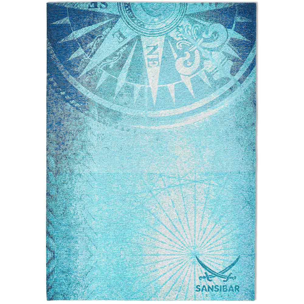 Der gute Laune Teppich für Ihr Zuhause! Mit seiner hochaktuellen Farb- und Designsprache ist dieser Teppich ideal für eine positive und lebendige Einrichtung. Der schlichte hellblaue Hintergrund wird verziert von eiem halben Kompass, ist er hergestellt aus schadstoffgeprüftem undstrapazierfähigem Polyestergarn mit hochwertiger Baumwolle und in aufwendiger Jacquardtechnik veredelt. Dank der Polyesterfasern hält dieses kurze Flachgewebe auch der größten Beansprungung stand und erfreut Sie jahrelang mit makellosem Aussehen. Der Teppich ist Fußbodenheizung geeignet und hat ein Maß von 80 x 160 cm.