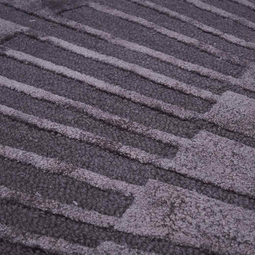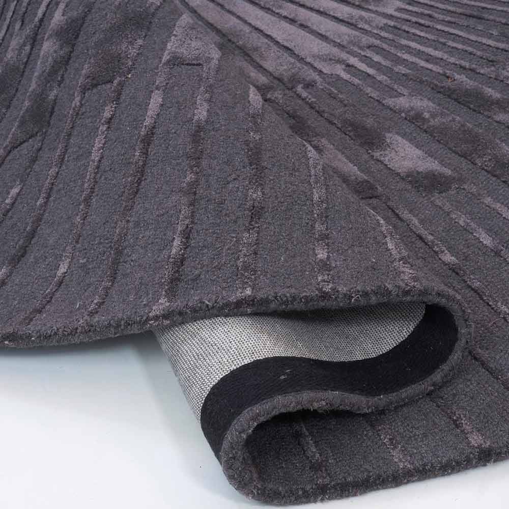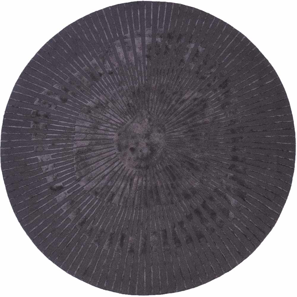 Radius - hier ist der Name Programm! Ein runder Teppich mit einem extravagantem Design mit Hoch-Tief-Elementen, die strahlenartig aus der Mitte nach außen verlaufen. Der weiche Flor aus einem Materialmix aus Wolle und Viskose ist besonders angenehm in seiner Haptik. Im dunklen Grau bringt er sich mit Leichtigkeit in jeden Einrichtungsstil ein. Er ist pflegeleicht und für Räume mit Fußbodenheizungen geeignet.