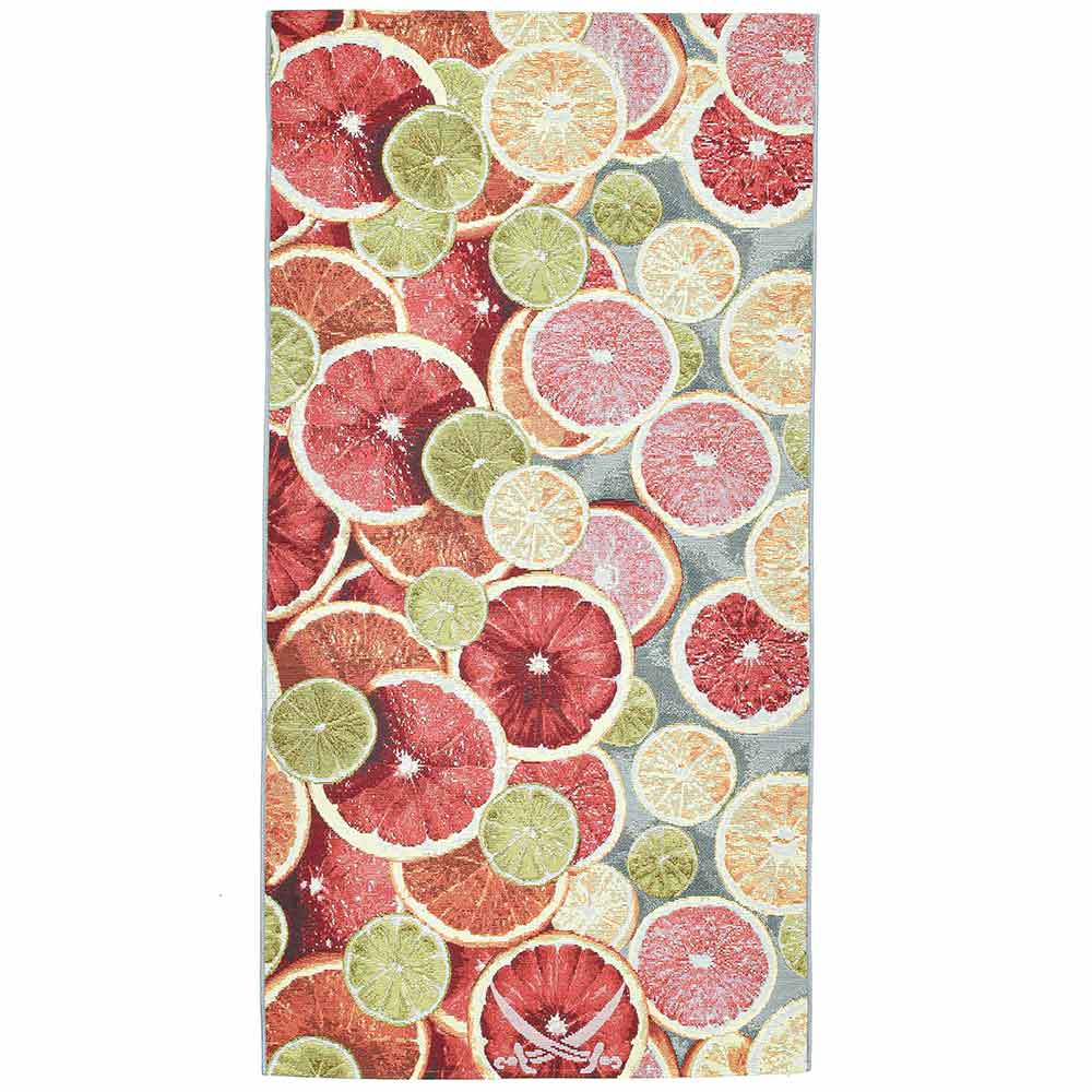 Sommer, Sonne, Sansibar! Der "Rantum Beach SA003" ist ein topaktueller, sehr strapazierfähiger Outdoor-/Indoor-Teppich, mit dem Sie sich den Sommer in Ihren Garten, auf Ihre Terrasse oder in Ihren Wohnbereich holen. Die verwendeten sehr widerstandsfähigen Synthetik Fasern bringen hervorrangende Nutzungseigenschaften mit sich, sie halten nicht nur größten Beanspruchungen stand, sondern sind auch feuchtigkeits- und UV-beständig. Das sommerliche Muster mit den vielen unterschiedlichen Zitrusfruchtscheiben in den hellen Farben Rot, Orange, Gelb und Grün ist ein echter Hingucker, egal ob drinnen oder draußen. Der Teppich ist Fußbodenheizung geeignet und hat ein Maß von 160 x 230cm.