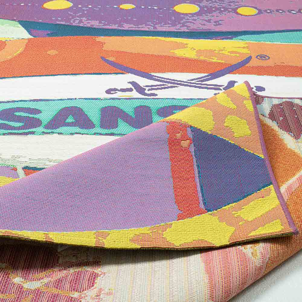 Der Teppich "Rantum Beach" aus der Sansibar Kollektion ist ein topaktueller, sehr strapzierfähiger Outdoor- und Indoor-Teppich mit einem farbenfrohen Design. Er bringt das berühmte Sansibar-Feeling "Urlaub, Freizeit und Glück" auf Ihre Terasse, in Ihren Garten oder in Ihr Wohn- und Esszimmer. Selbst als Küchen- oder Kinderzimmerteppich eignet sich diese robuste Qualität, außerdem hält das kurze Flachgewebe, dank der Materialzusammensetzung auch der größten Beanspruchung stand und ist Feuchtigkeits- sowie UV-Strahlen resistent. Das bunte Surfbrett-Design ist ein echter Sommerhit. Der Teppich ist Fußbodenheizung geeignet und hat ein Maß von 100 x 200 cm, dieses Maß eignet sich ideal als Strand- oder Balkon-Teppich.
