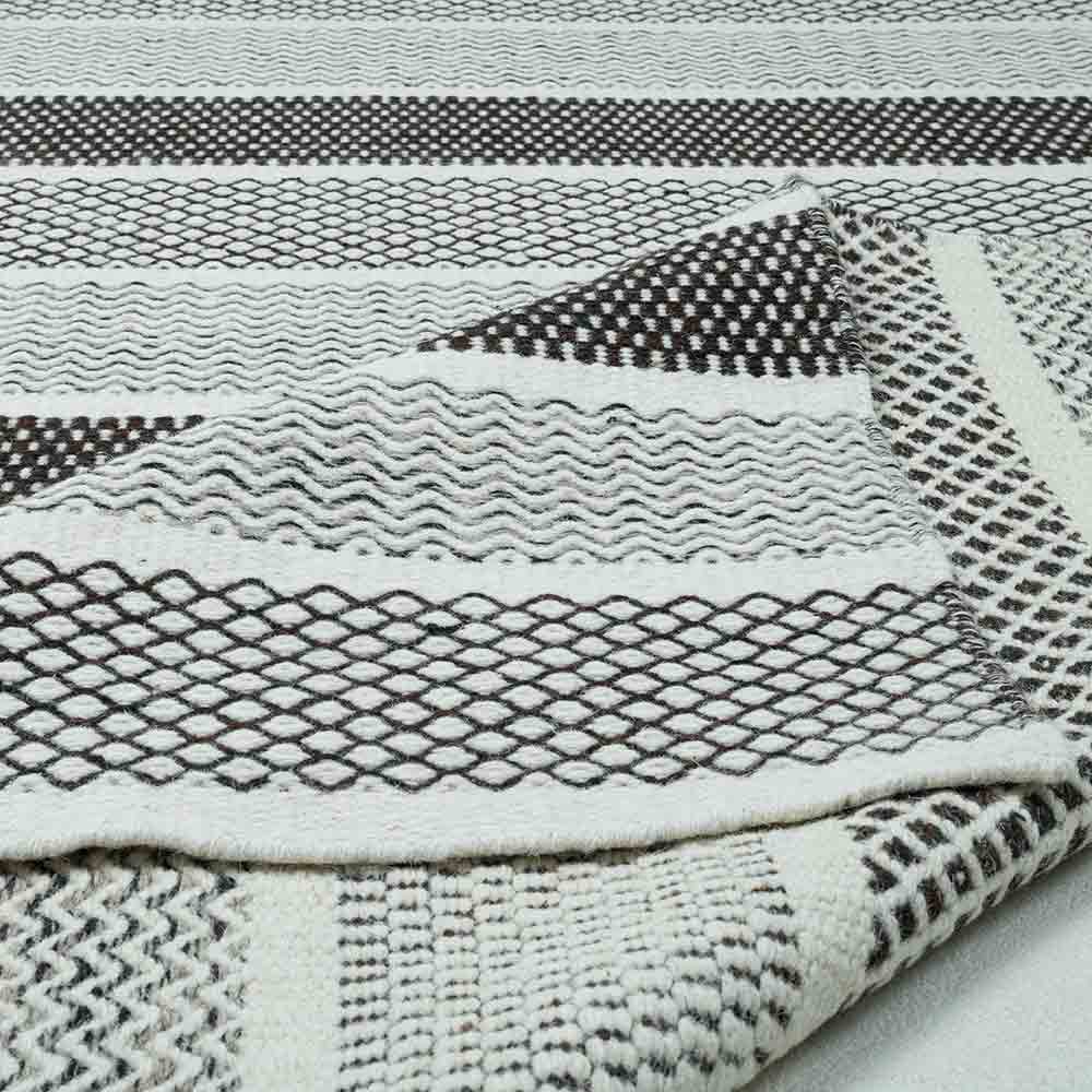 Einfach chic! Dieser Teppich strahlt im Scandi-Chic Design, gerade das Flachgewebe und das darin enthaltene vielfältige Muster sind der Einrichtungstrend. Die breiten Streifen in verschiedenen Grautönen tragen jeweils noch eigene Muster in sich, können perfekt in Ihren Wohnraum integriert werden. Der Trondheim Teppich besteht aus 100% ungefärbter Schurwolle in aufwendiger Handarbeit gewebt. Der Teppich ist Fußbodenheizung bgeeignet und hat ein Maß von 80 x 150 cm.