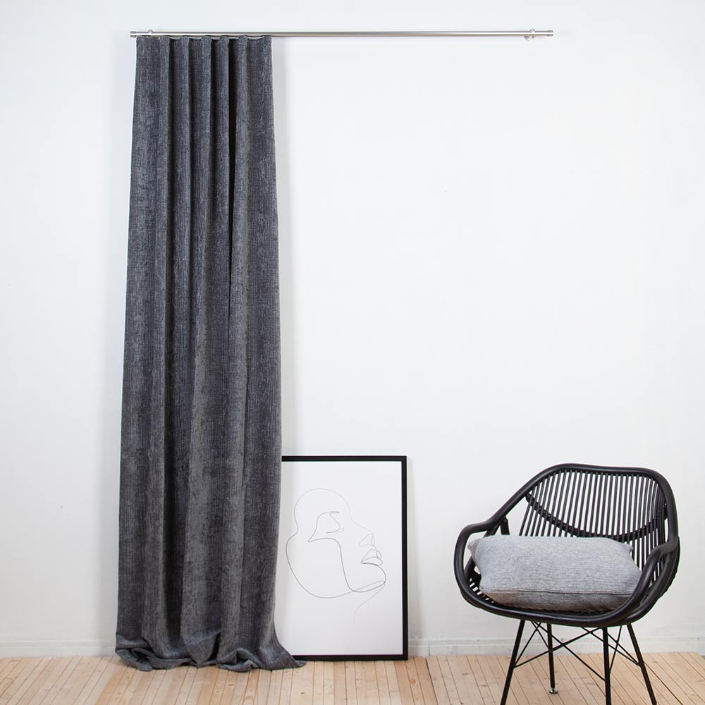 Ein Vorhang für die Wärme! Der elegante Vorhang Inuit bietet, dank der schweren Stoffqualität, eine gute Unterstützung die Wärme drinnen zu halten und die Kälte an den Fenstern zurück zu halten. Er ist stark wärmedämmend und hilft somit beim Energiesparen. Der Chenille-Stoff ist dunkel meliert in der Farbe Asphalt wodurch er auch recht unempfindlich ist und macht so einen schicken Eindruck an Ihrem Fenster. Der Vorhang-Schal ist 245 cm hoch und 145 cm breit und kann mit seinem Kräuselband leicht aufgehängt werden.