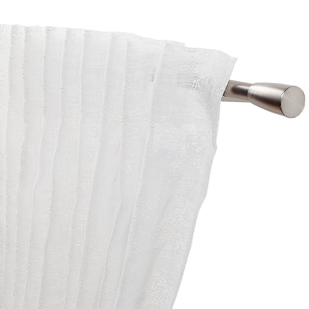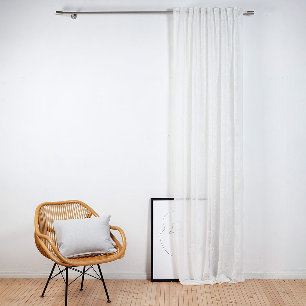 Der Vorhang Juli in der Größe 140 x 255 cm bringt mit seiner weißen Grundfarbe und dem feinen weißen Floraldesign eine leichte, elegante Atmosphäre in jeden Raum. Das halbtransparente Gewebe lässt angenehm viel Tageslicht herein und sorgt gleichzeitig für eine dezente Privatsphäre. Dank des praktischen Durchschubbands lässt sich der Fertigschal schnell und unkompliziert aufhängen. Sein zeitloses Design passt sowohl zu modernen als auch zu klassischen Einrichtungsstilen. Eine Gardine ideal für Wohn- und Schlafzimmer, in denen eine freundliche und luftige Raumwirkung gewünscht ist.